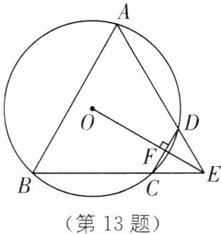 13. 如图,四边形 ABCD 是$\odot O$的内接四边形,BC 的延长线与 AD 的延长线交于点 E,且$DC= DE$.