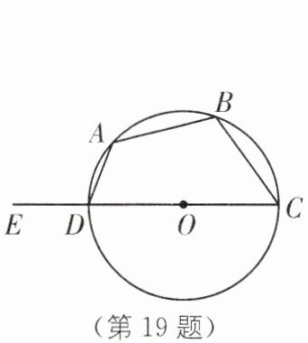 19.(2024·西宁中考)如图,四边形 ABCD 内接于$\odot O$,E 为直径 CD 延长线上一点,$\widehat {AB}= \widehat {BC}$,$\angle ADE= 110^{\circ }$,则$\angle DAB= $______.
