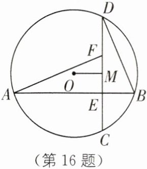 16. 如图,圆 O 中两条互相垂直的弦 AB、CD 交于点 E.