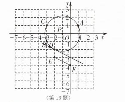 (1)(-1,0) √5 [解析]画出△ABC的外接圆⊙P,如图所示,则P(-1,0),半径PA = √[(-1 - 1)² + 1²] = √5.