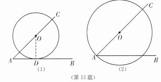 13.(2025·宿迁宿豫区期中)如图,$∠BAC= 45^{\circ }$,点 O 在 AC 上,且$AO= 4$,以点 O 为圆心,r 为半径画圆,若$∠BAC$的边 AB 与$\odot O$有两个公共点,则 r 的取值范围为______.