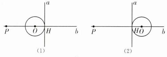 (1)所示,OP = PH - OH = 6 - 2 = 4(cm);当点O在点H的右侧,⊙O与直线a相切时,如图