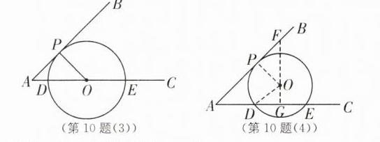 (3),以DE为直径的圆与AB相切时,OP=1/2DE=5,OP⊥AP,则OA=5√2,m=5√2−5.