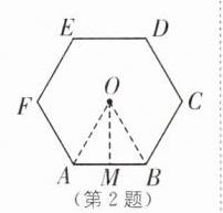 2.(2024·德阳中考)已知,正六边形ABCDEF的面积为$6\sqrt{3}$,则正六边形的边长为( ).