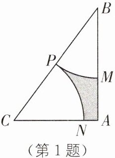 1.(2025·重庆八中期中)如图,在Rt△ABC中,∠A= 90°,AB= 4,AC= 3,分别以B、C为圆心,$\frac{1}{2}BC$长为半径画弧,交BC于点P,交AB于点M,交AC于点N,则图中阴影部分的面积为(