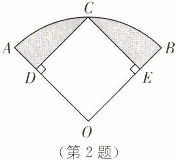 2.(2025·天津河东区期末)如图,在扇形OAB中,已知∠AOB= 90°,OA= $\sqrt{2}$,过$\widehat{AB}$的中点C作CD⊥OA,CE⊥OB,垂足分别为D、E,则图中阴影部分的面积为______.