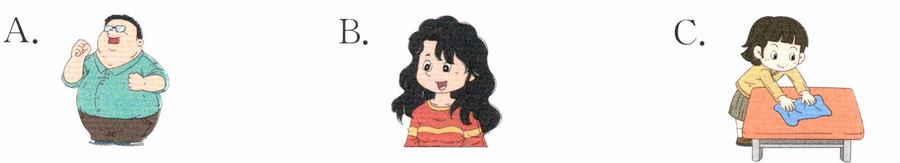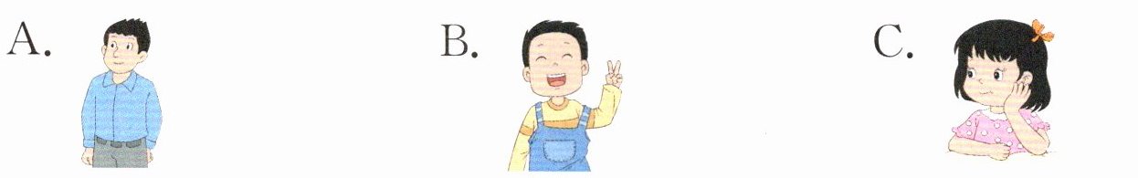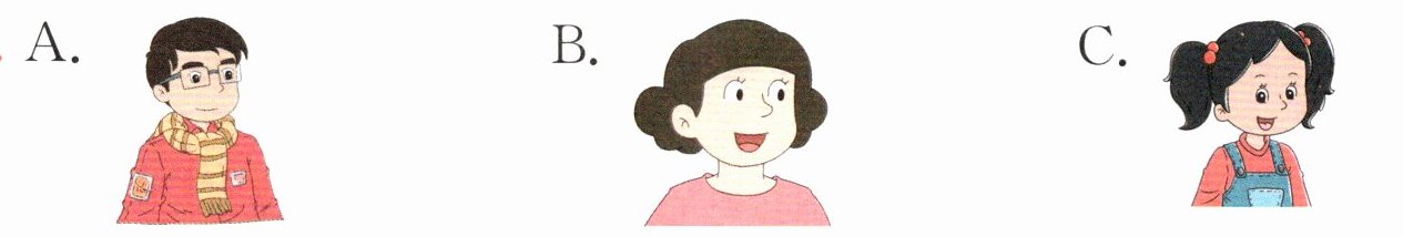 1. cousin 2. tall 3. Miss 4. short 1. 根据第三句“她是可爱的”可知,空格处应为一位女性。brother(哥哥;弟弟)表示男性;cousin 可表示女性(堂/表姐妹),符合题意。2. 由图片可知,男人是高的,故填 tall。short 意为“短的;矮的”。3. 根据第二句中的“她”可知,表示女性的 Miss(小姐)符合题意。“Mr”意为“先生”。4. 由图片可知,男孩是个子矮的,故填 short。