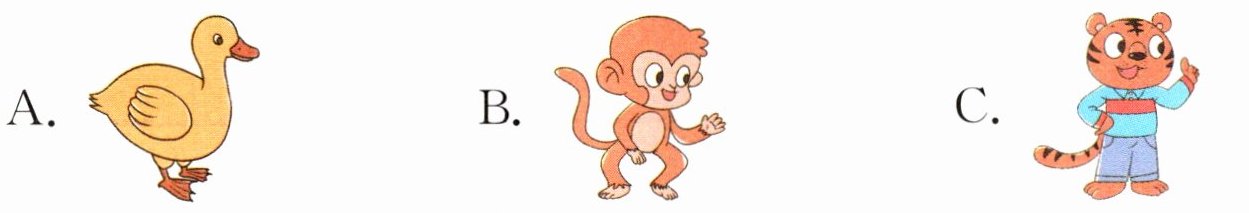 1~4 C D A B 1. 根据答句“Good morning,Yang Ling.”可知,上文在打招呼,C项“早上好,王兵”符合题意。 2. 根据答句“它们是猴子”可知,上文应询问是什么,D项“那些是什么”符合题意。 3. 结合答句“是的。它们是棕色的。它们很可爱”和选项可知,上文说出了猴子的某种特征,A项“它们有长尾巴”符合题意。 4. 根据答句“我也是”可知,上文提出了想法,B项意为“我喜欢猴子”符合题意。