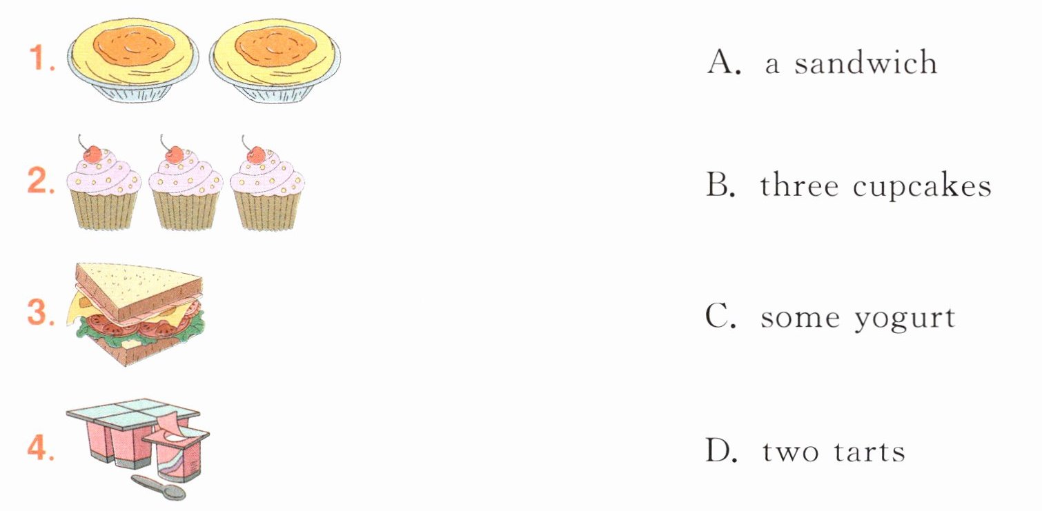 4. 图片显示一些酸奶,英文为"some yogurt"。故和C相连。