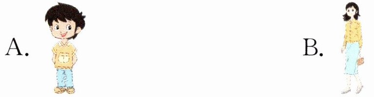 1~3 AAB 1. 根据句意"你好,陆夫人"可知,A图的女士符合题意。 2. 根据句意"这是我的叔叔。他是高的"可知,A图符合题意。 3. 根据句意"——这是你的妈妈吗?——不。她是我的姑姑"可知,B图的女士符合题意。