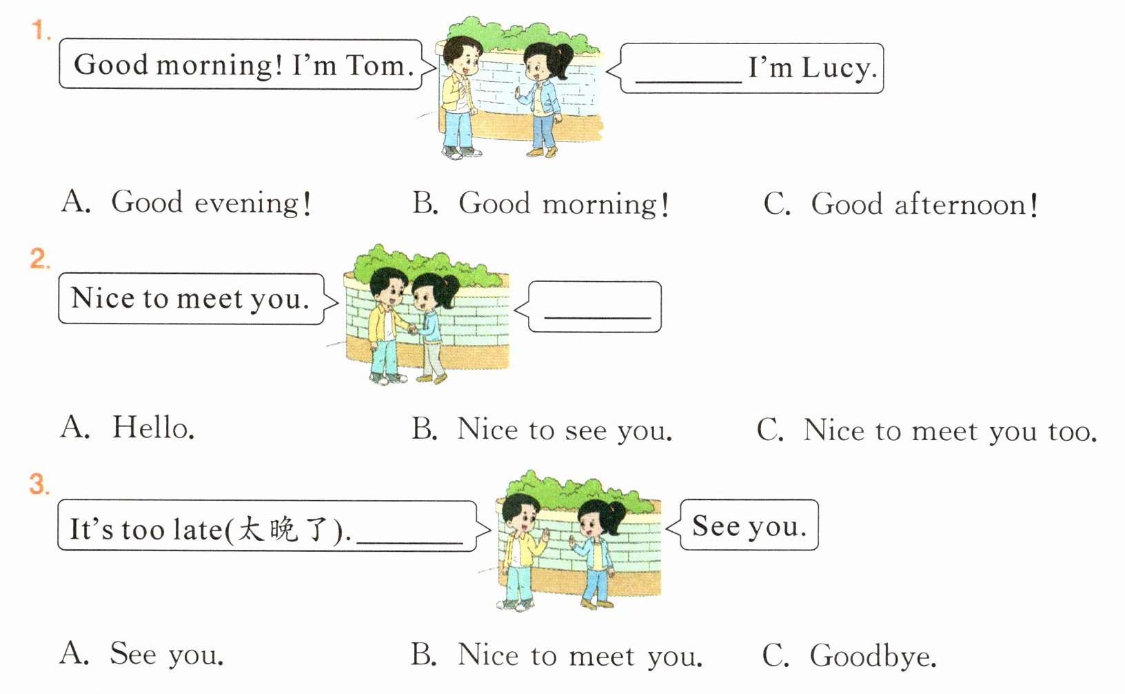 (一)1.B 2.C 3.A (二)Hello, I'm Lily.