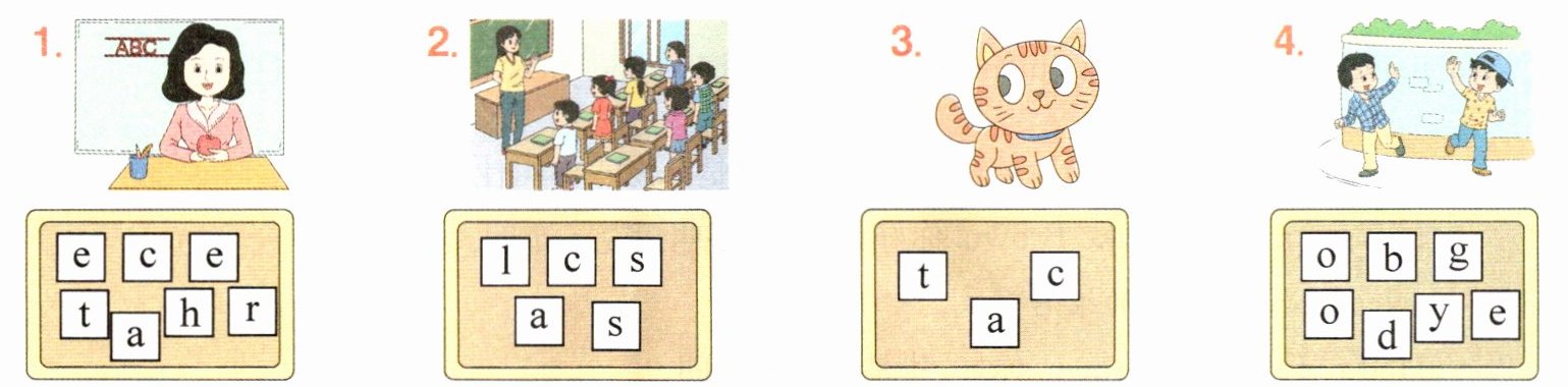 一、Look at the pictures and the letters. Write the words. 看图片和字母,写单词。