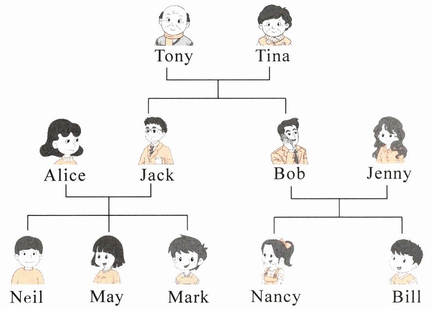 )2. Jenny is Nancy's ______. A. mother B. sister C. grandma(