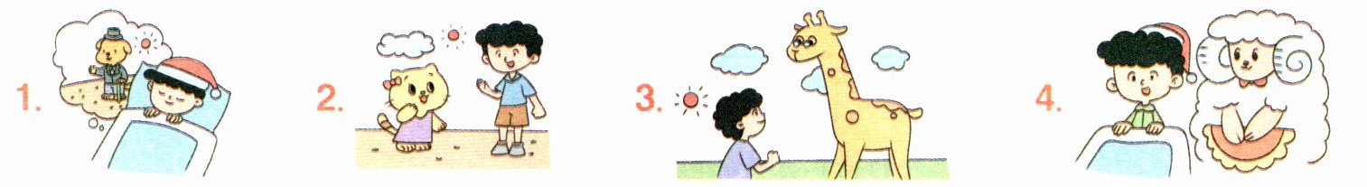 六、新情境 交动物朋友 Miles 在梦中遇见了几位新朋友。看图读对话,完成各题。