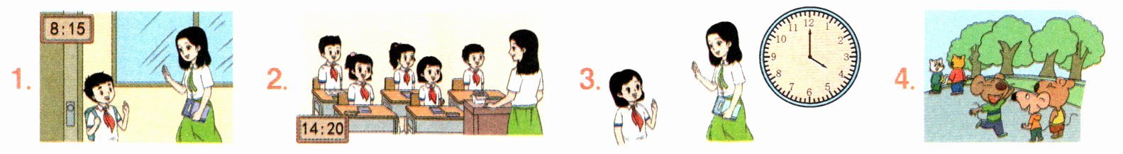 1. T 2. F 3. T 4. F 1. 根据图意,早上八点十五分是上午时间段,打招呼用“Good morning”。 2. 根据图意,下午学生们和李老师在打招呼,应该用“Good afternoon, Miss Li.”。 3. 根据图意,下午 4 点打招呼用“Good afternoon.”。 4. 此图为博比和其他小老鼠打招呼的图片,不是和萨姆。