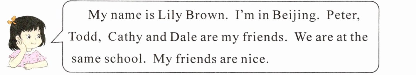 My name is Lily Brown. I'm in Beijing. Peter, Todd, Cathy and Dale are my friends. We are at the same school. My friends are nice.
