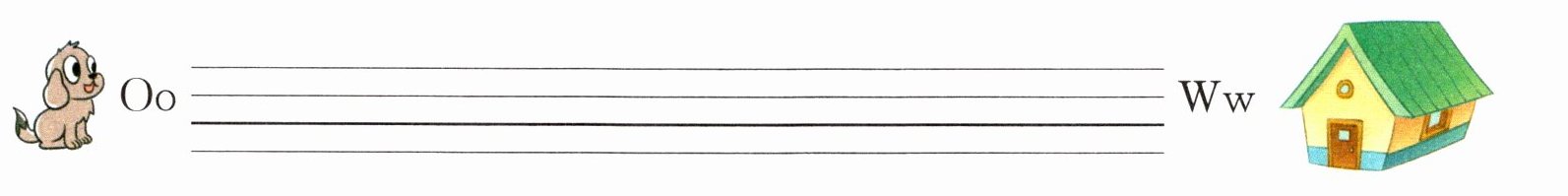 二、实验班原创 语言能力 小狗 Tony 忘了回家的路,让我们一起来帮助他吧。请根据字母表顺序写出 Oo—Ww 之间字母的大小写形式。