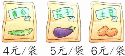4×6=24(元) 6×4=24(元) 军军可能买了6袋黄瓜,还可能买了4袋土豆。