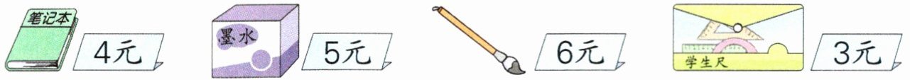 (1) 买4本笔记本需要多少钱?买3支毛笔和1套学生尺需要多少钱?