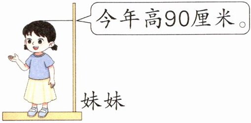 4.90-85=5(厘米) 1米=100厘米 100-90=10(厘米) 【解析】妹妹去年的身高是85厘米,今年的身高是90厘米,要求妹妹今年比去年长高多少厘米,用今年的身高减去去年的身高即可。要求妹妹再长高多少厘米就是1米,1米=100厘米,用100厘米减去妹妹今年的身高即可。