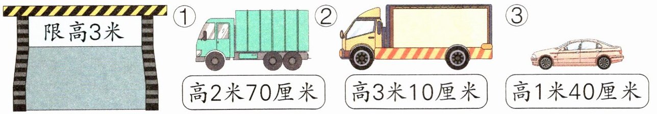 5.② 【解析】“限高3米”就是指经过桥洞的车辆的高度不能超过3米。观察这3辆车的高度,发现只有②号车超过3米,故②号车不能通过桥洞。