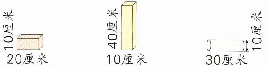 4. 搭积木。下面积木各一块,搭出的积木最高是( )厘米,比 1 米矮( )厘米。
