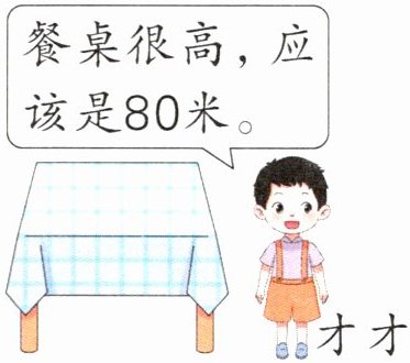 (2)理由:才才的身高是1米多,才才比餐桌( ),所以餐桌高约80( )。