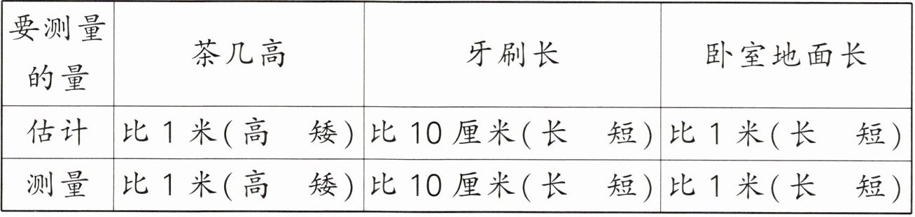 |要测量的量|茶几高|牙刷长|卧室地面长|