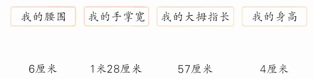 2. 下面是菲菲的测量清单和测量结果,请你帮她连一连。