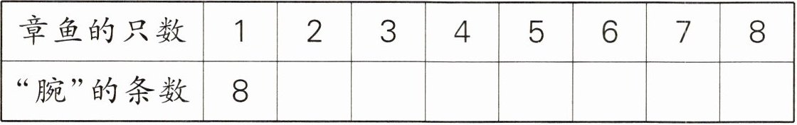 4.章鱼又称“八爪鱼”,每只章鱼有8条“腕”,据此填写下表。
