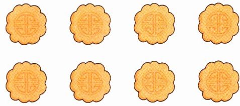4. 我和妈妈做蛋糕。移一移,使每行一样多,再写乘法算式。