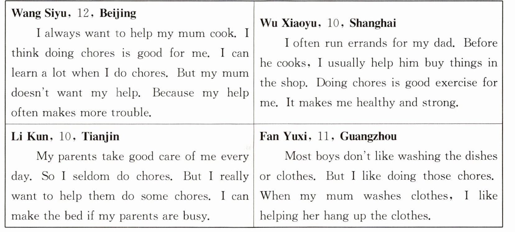 ( )1. What chore does Wang Siyu want to do to help her mum?