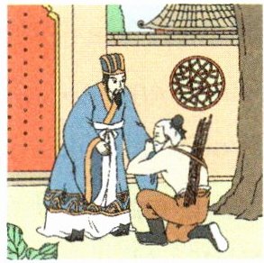 Lian Po hears about it. He comes to Lin's house with rods on his back and asks Lin Xiangru for punishment. He says,"I am wrong. I should think more about our state. Can we be friends?" "Yes," says Lin Xiangru.