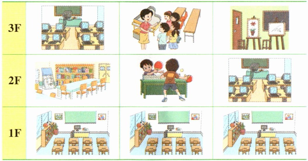 nine/9,classrooms,on,second,table tennis,computer,art,second,books