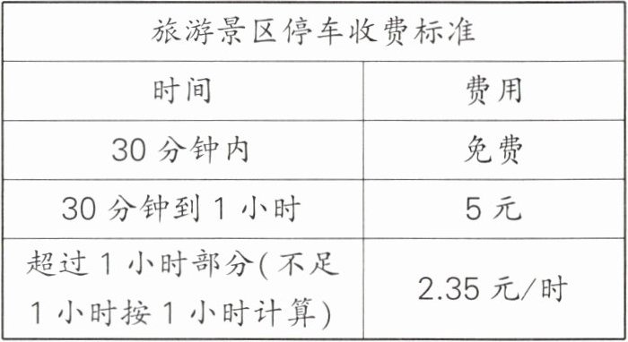 【解析】先求出一共停了多久的车,不满1小时按1小时计算。停车总时间超过1小时就用5元加上超过部分的停车费用。
