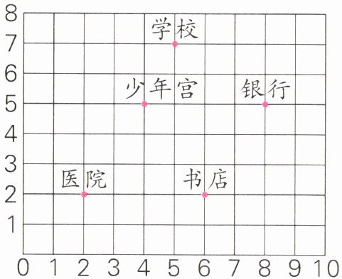 (1)少年宫的位置用(4,5)表示,请用数对表示下面各地点的位置。