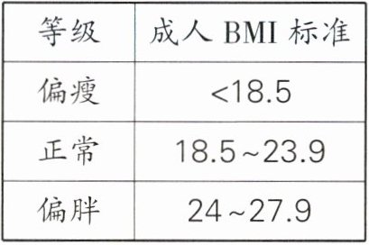 【解析】先求出妈妈的体重指数,再与成人BMI标准进行比较。