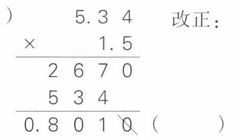 【解析】列竖式计算小数乘小数,小数的末尾要对齐,两个因数中一共有几位小数,积就是几位小数,先点上积的小数点,再去掉积中小数部分末尾的0。
