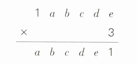 【解析】e×3的个位是1,7×3=21,所以e=7。d×3+2的个位是7,5×3+2=17,所以d=5。c×3+1的个位是5,8×3+1=25,所以c=8。b×3+2的个位是8,2×3+2=8,所以b=2。a×3的个位是2,4×3=12,所以a=4