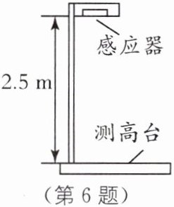 6.(2023·安徽中考)如图所示为一种身高测量仪,其顶部的感应器竖直向下发射超声波信号,经下方物体反射后返回,被感应器接收. 某同学站上测高台,感应器记录信号从发射到接收所经历的时间为$ 5×10⁻^3 s. $已知感应器距测高台的高度为 2.5 m,空气中的声速取 340 m/s,则该同学的身高为(