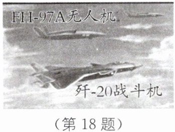 18. (2024·常州中考)将来,依托人工智能技术,我国研发的"忠诚僚机"FH-97A无人机将与有人驾驶歼-20战斗机"比翼齐飞"(即相对静止),如图所示,若认为FH-97A无人机是静止的,则选取的参照物是(