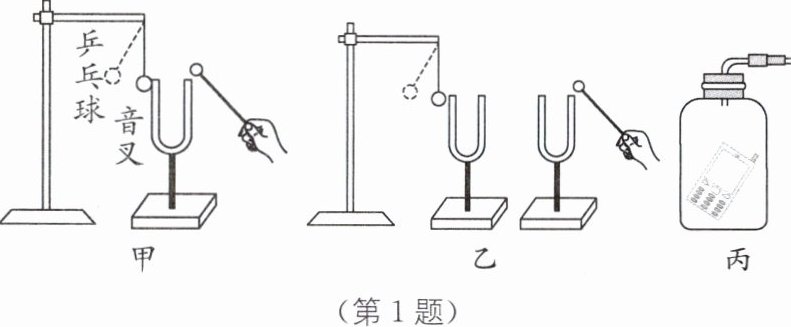 ______ (填“等效替代法”或“转换法”).(3)如图乙所示,当敲击右边音叉时,发现:乒乓球被左边与它接触的音叉弹开,这个实验说明:声音可以在 ______
