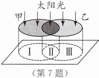7.B [解析]蓝色透明玻璃片甲只允许蓝色光透过,红色透明玻璃片乙只允许红色光透过,故Ⅰ区域为蓝色,Ⅲ区域为红色,而蓝色透明玻璃片甲不允许红光透过,红色透明玻璃片乙不允许蓝光透过,故Ⅱ区域为黑色.