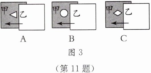 (5)为了研究小孔大小对成像的影响,小华又设计了三种有不同形状孔的卡片甲,如图3所示,并用另一张卡片乙覆盖在甲上,接着,从图示位置沿箭头方向水平移动乙,改变孔的大小,观察光斑形状的变化情况,能满足实验要求的是