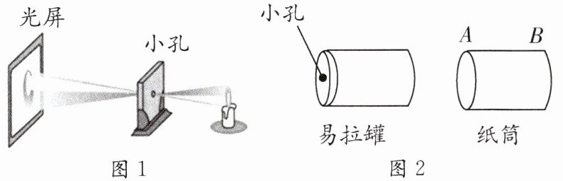 .(2)小华想根据小孔成像的原理用易拉罐和纸筒制作一个简易针孔照相机,如图2所示,在纸筒A端封上半透明膜,将纸筒的