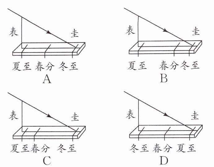 (2)已知北半球某处冬至、春分和夏至时正午太阳高度分别为26°34'、50°和73°26',则该处圭表上节气刻度的大概位置正确的是______.