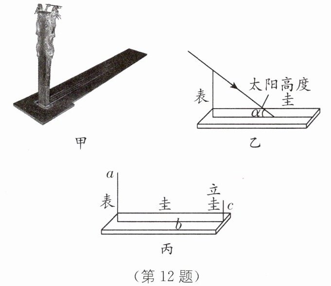 (3)小明用图丙所示圭表观测时,发现落在立圭上的表影高度为c,若表高为a,表与立圭间的水平距离为b,则此时表的真实影长为______(用已知量的符号表示).