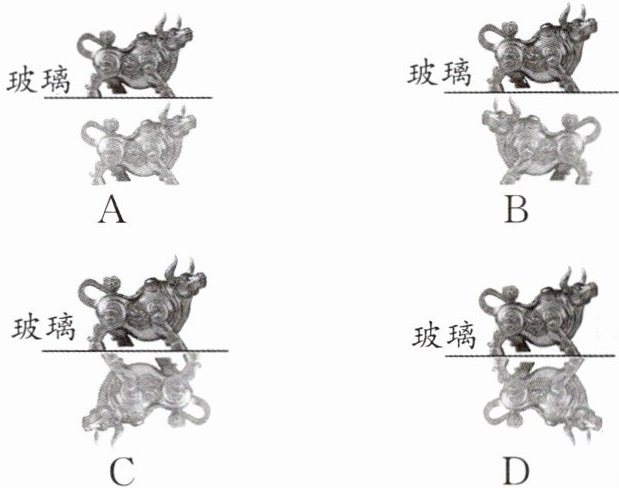 在书写作画时,用镇纸压住纸张防止纸张移动.将镇纸放置在玻璃上,镇纸通过玻璃所成的像正确的是(