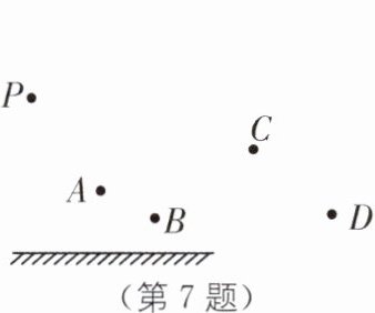7. (2024·扬州高邮期中)平面镜有 A、B、C、D 四个发光点,人眼在 P 处,如图所示,哪个点光源发出的光线经平面镜反射后不进入人眼? (