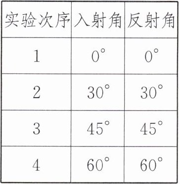 的方向多次实验,最终画出光线测量出反射角和入射角的度数如表所示,由表可得:反射角等于